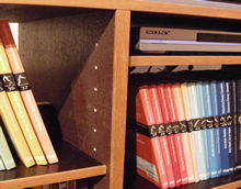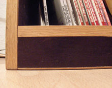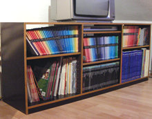 Bücher, Platten und CD -Regal aus Multiplex Siebdruckplatte, mit verschiedenen Anleimern - hier Eiche natur / geölt.