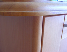 Küchenschrank aus Buche, Fronten aus Vollholz und Korpus funiert. Die Oberfläche ist lackiert. < zurück >